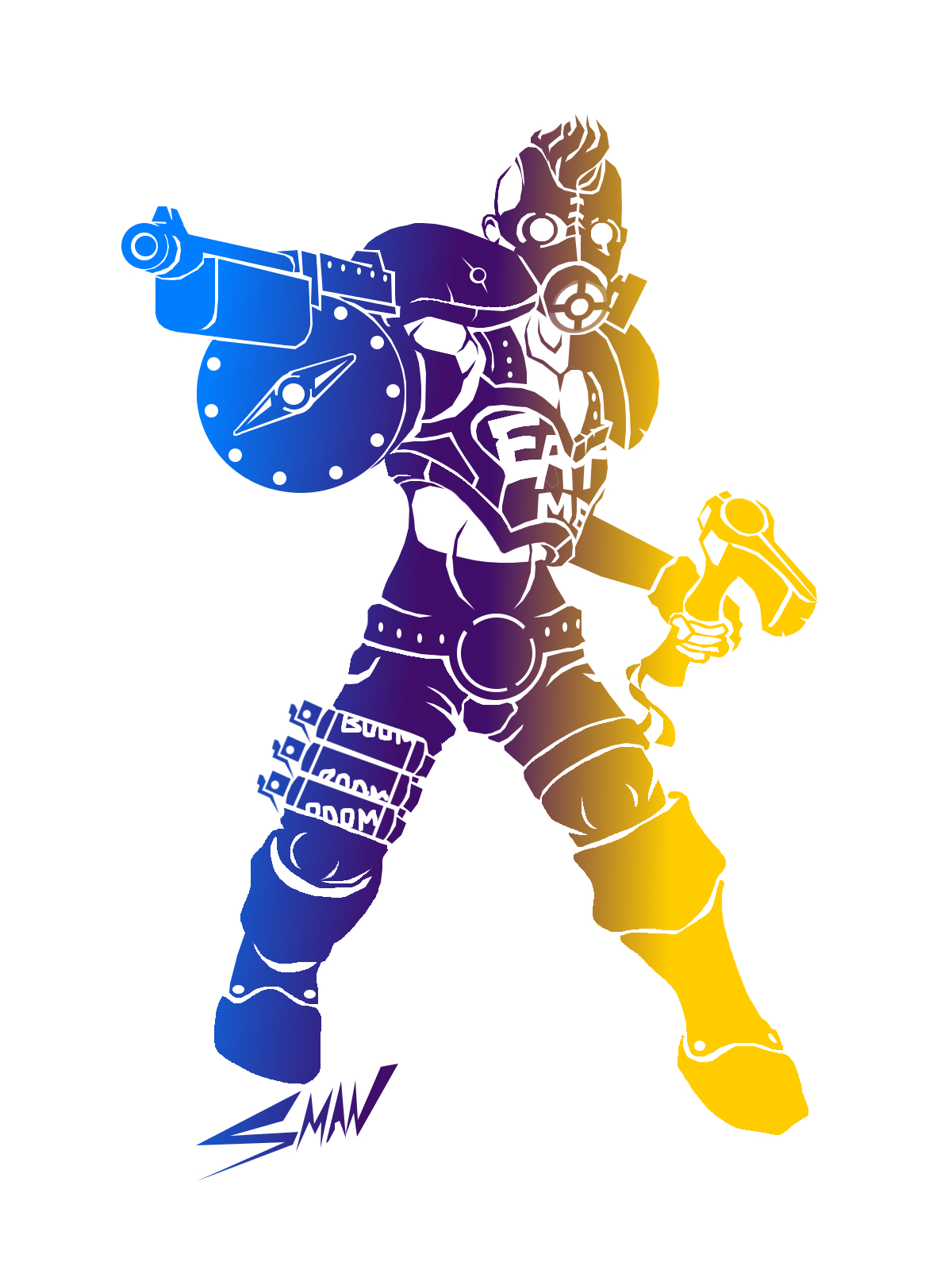 War Tooth was a character designed for a friend's post-apocalypse setting. Taking heavy inspiration from the likes of Borderlands and MadMax, War Tooth was a gun toting bandit of sorts. Originally he was going to have a bulls-eye painted either on his chest or head. However, I was experimenting with block colouring and fell in love with a sort of psychodelic gradient. Ultimately I wrote 'Eat Me' on his chest plate, and named him 'War Tooth' as a bit of a joke.